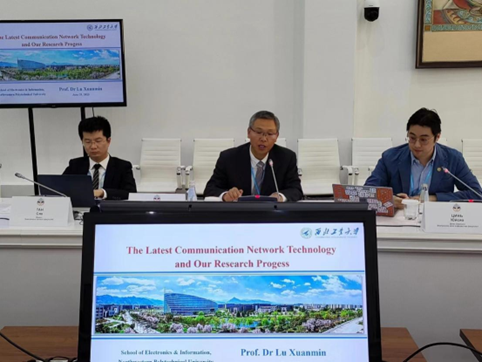 将以此为契机,充分发挥学科优势,在学校的统一指导下,详细制定培养方案,高效推进分校建设。学院教师代表卢选民副教授作了题为The latest communication network technology and our research progress的专题报告,阐明了通信网络技术的重要意义,并展望了当前的研究热点及未来发展方向。