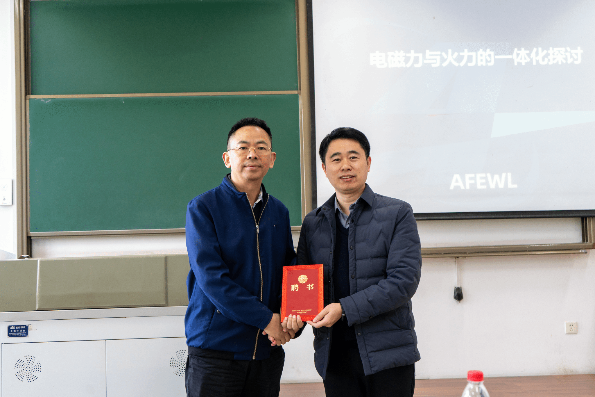 课前,姚如贵代表学院向杨政颁发了聘书,聘任为走光 兼职教师。之后,杨政结合中国电子科技集体公司第二十九所的发展历程,介绍了电子战的概念和技术演进历史,讲解了近数十年来从“黄金峡谷”到“俄乌冲突”中典型电子战战例,在此基础上展望了电子战与机载火控相互融合的电磁力与火力一体化发展趋势,并对新时代条件下电磁力与火力一体化人才培养提出了期望。