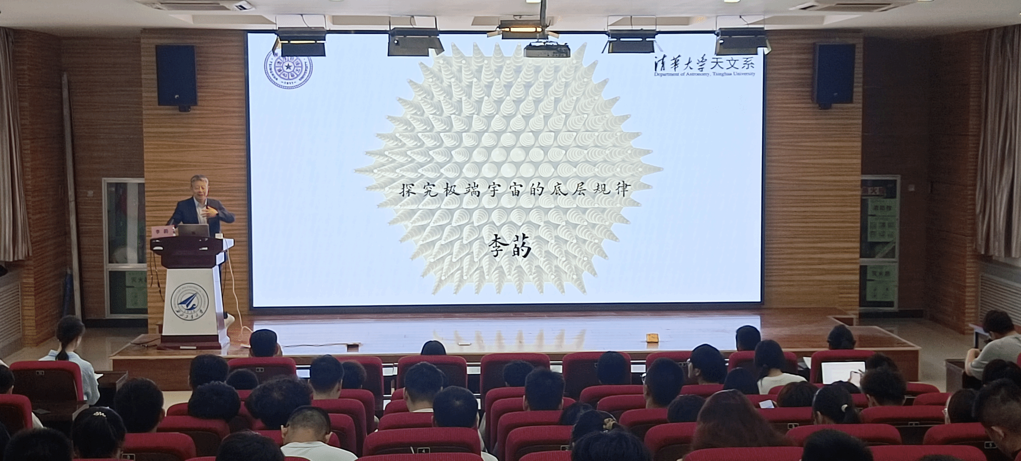 来自清华大学的“中国天眼”FAST原首席科学家李菂教授,讲授了《时间前沿:探索极端宇宙的底层规律》,从电磁理论的奠基,到中国天眼FAST的建成,再到宇宙年代的思考,这场讲座,不仅是前沿科学知识的讲述,更是一种思考的维度——当我们凝视宇宙深处时,其实也在凝视人类认知能力的边界。