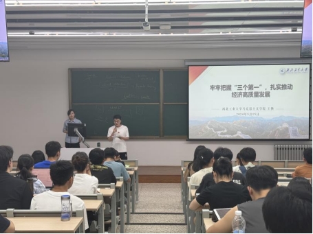 5月15日,马克思主义学院教师王换讲授《牢牢把握“三个第一”,扎实推动经济高质量发展》党课,走光