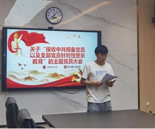 硕士第六党支部于2024年6月12日晚,在119会议室召开第二季度“党员大会”,开展针对性警示教育,引导支部党员举一反三、引以为戒。大会由支部书记陈爽主持,支部全体党员参加会议。